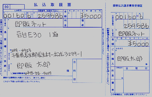 振込取扱票No,00160-6- 259586